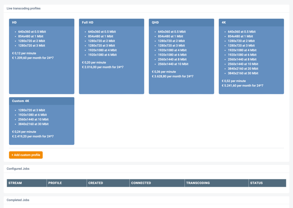 That’s how you can use our MaelStrom Live transcoding in a smart way. Just create a custom profile and choose it while starting a live stream. Still easy, huh? And it’s so powerful, it gives you full control over qualities and costs. Have you seen anything that powerful and transparent, yet so easy?