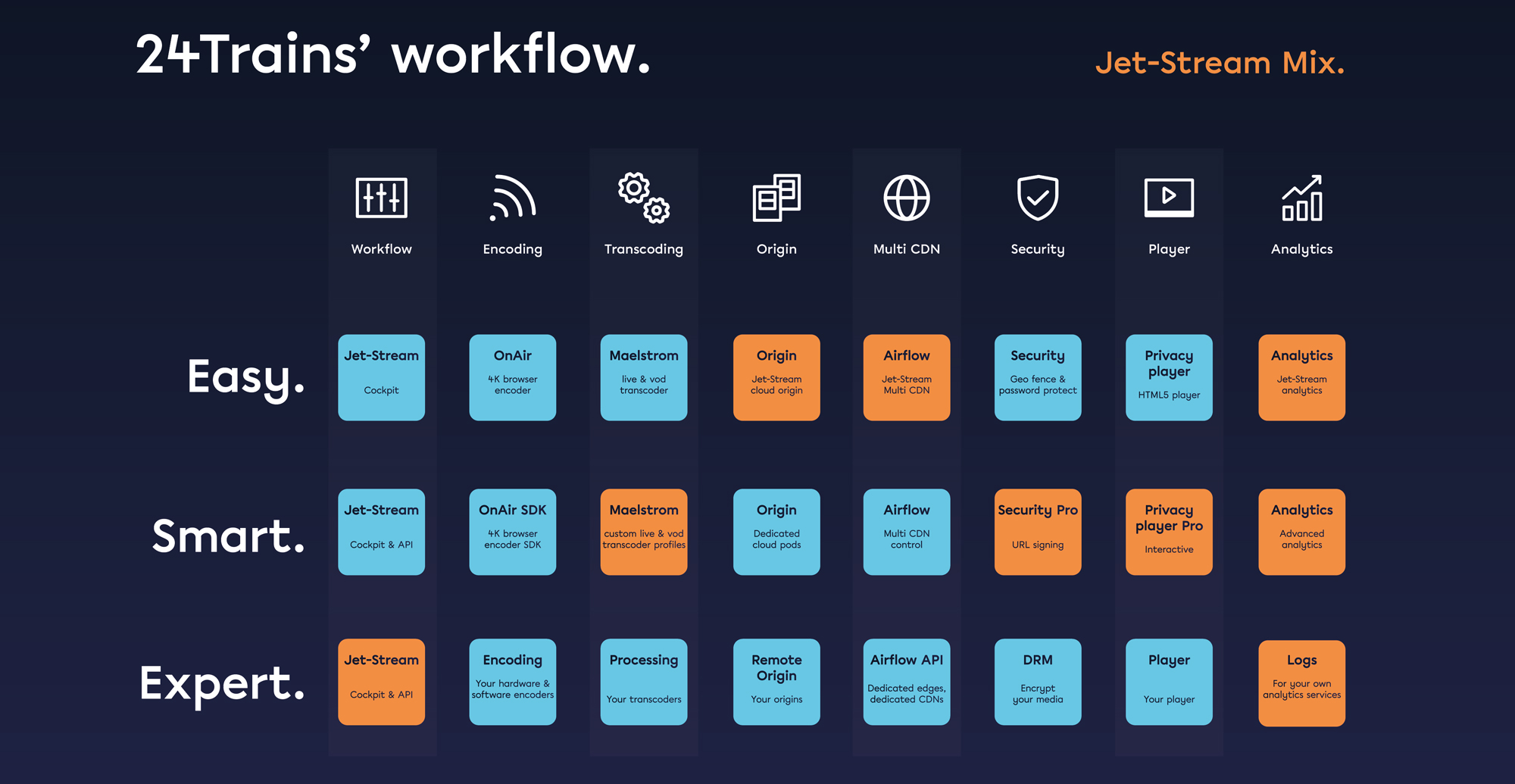 Jet-Stream’s technical advice, workflow integration, player integration and cost calculations resulted in a successful and smooth implementation of the 24Trains platform.