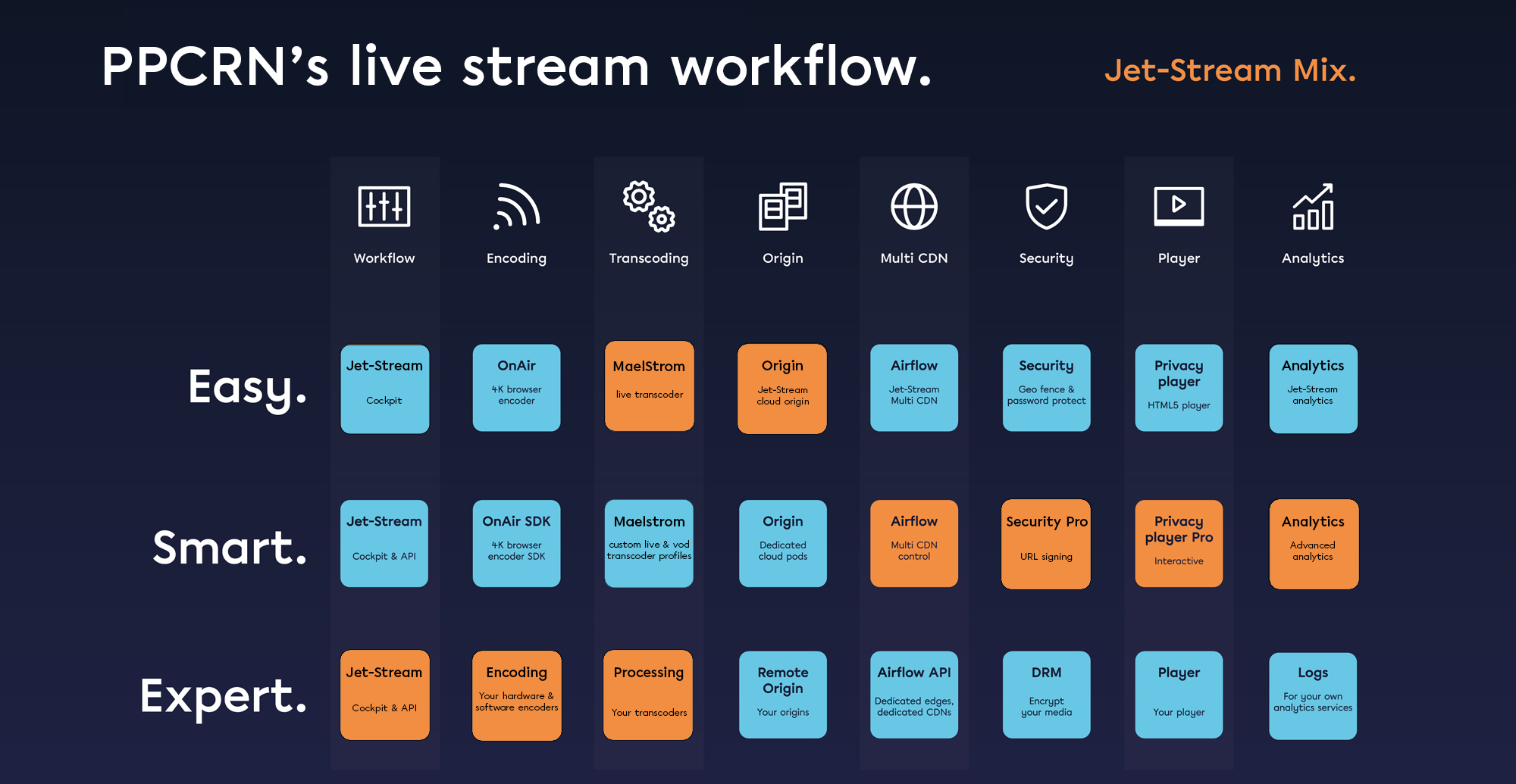 For global performance, scale and reliable high-quality streaming, PPCRN leveraged Jet-Stream’s built-in Airflow Multi CDN service, with its 7 integrated global CDNs.